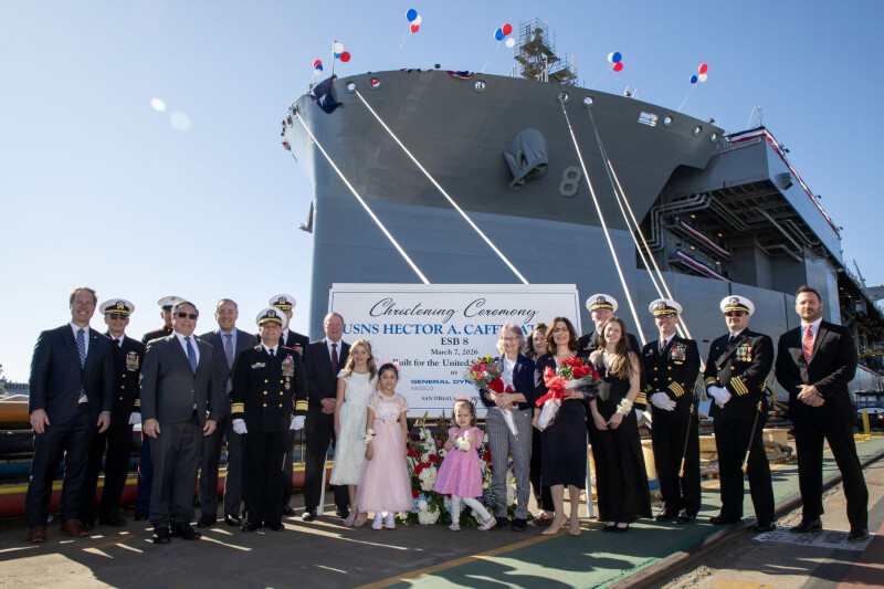 SAN DIEGO โ The U.S. Navy added a new warship to its fleet Saturday as General Dynamics NASSCO christened the USNS Hector A. Cafferata Jr. (ESB 8) at its San Diego shipyard, completing the sixth and final vessel in the Expeditionary Sea Base program.